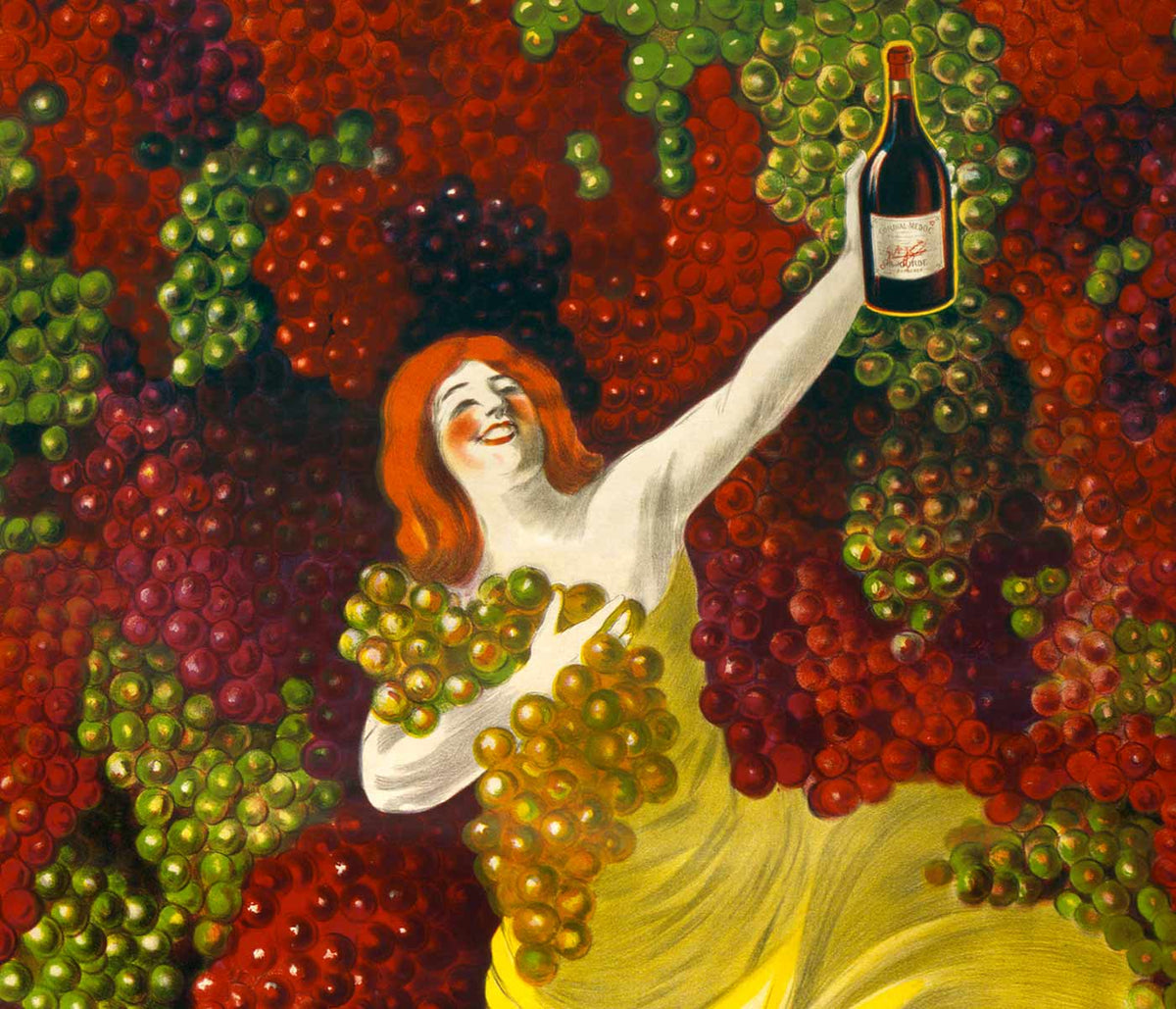 Leonetto Cappiello · 1907 · Joyful liquor poster featuring a yellow-clad dancer with cascading grapes