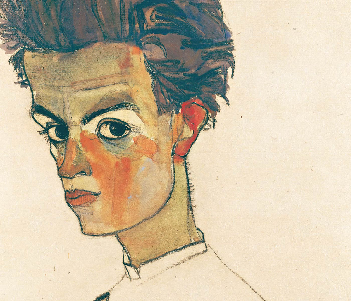 Egon Schiele · 1908 · Expressive portrait art print with spare linework and warm brown washes