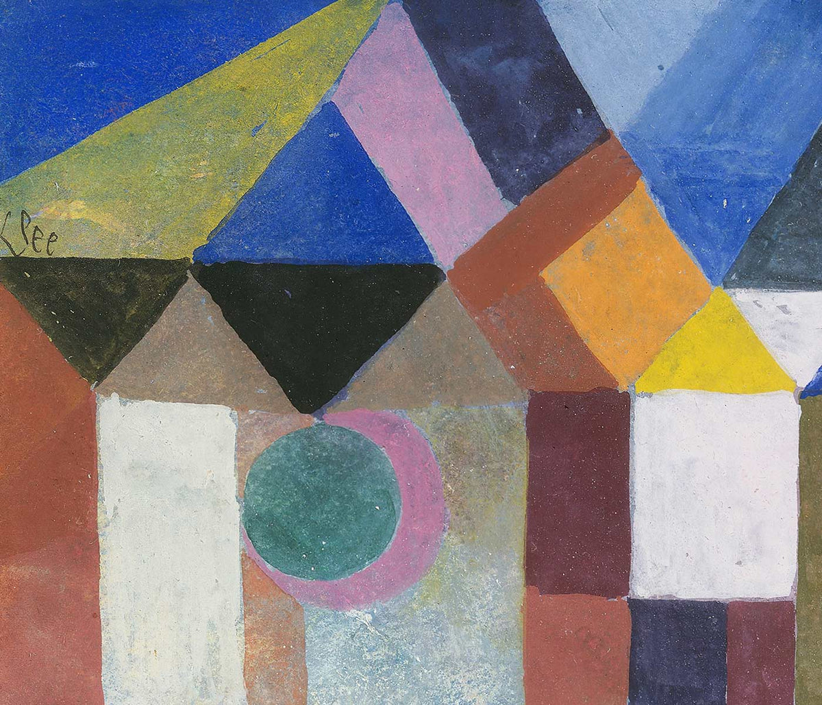 Paul Klee · 1917 · Playful geometric architecture poster with bright blocks of blue, pink, and yellow